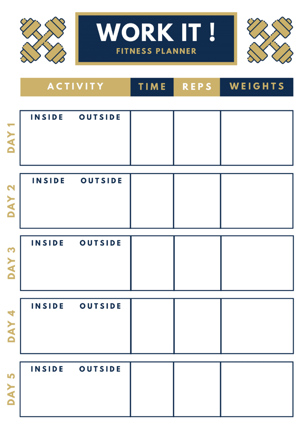 A Fitness Workout Planner in A4 Portrait PDF Format