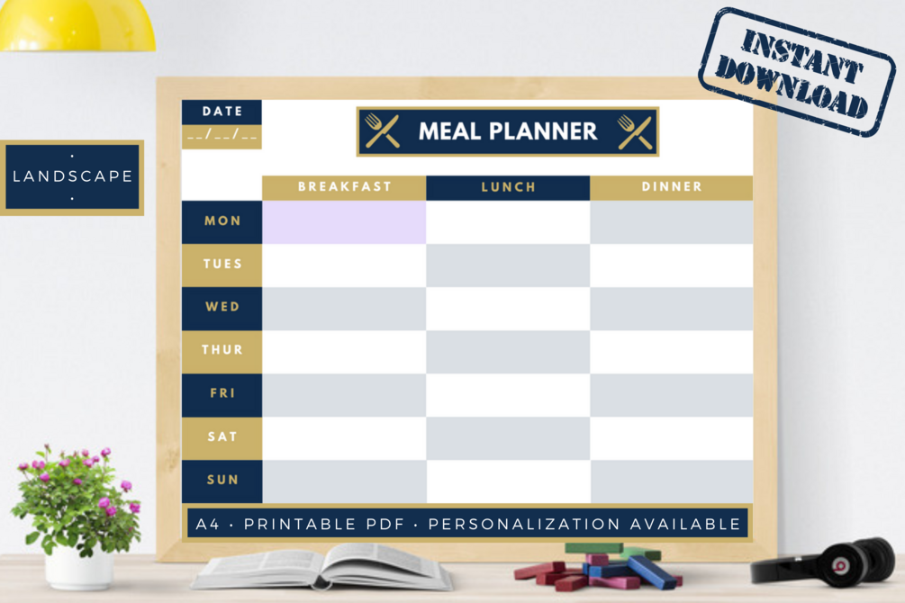 Meal Planner | A4 Landscape PDF | Digital Downloadable File | Personalizable