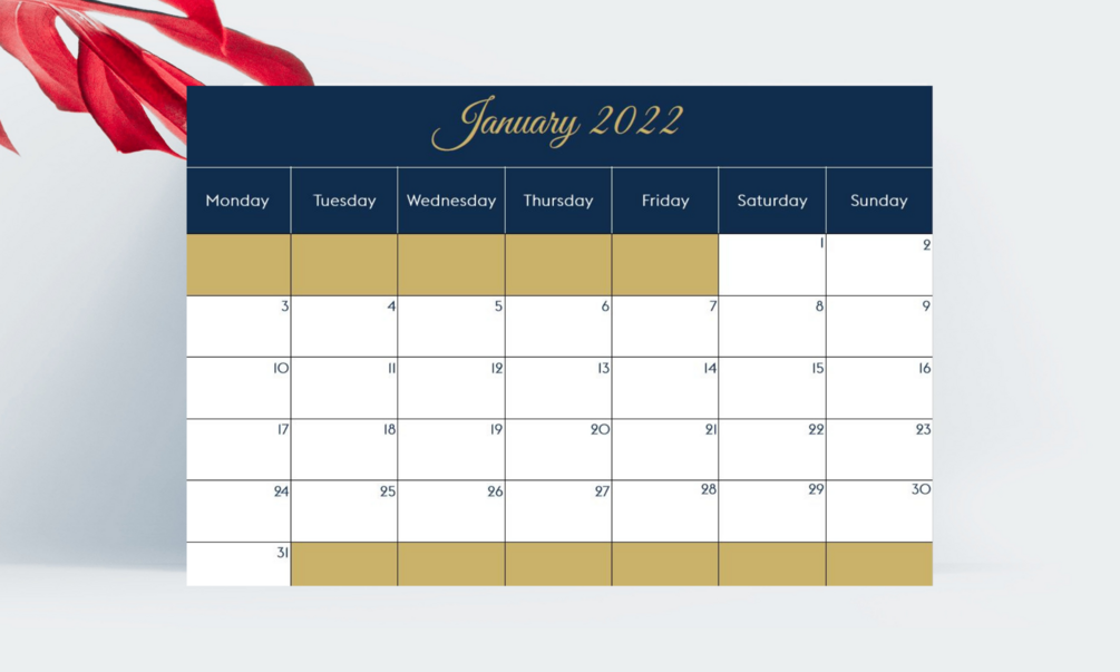 2022 monthly calendar in A4 landscape PDF format