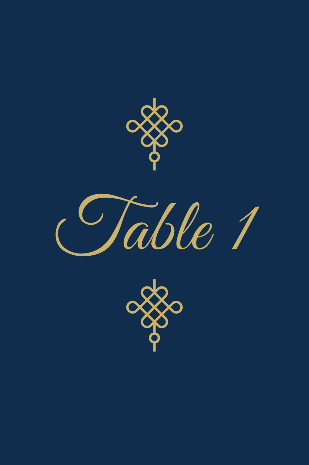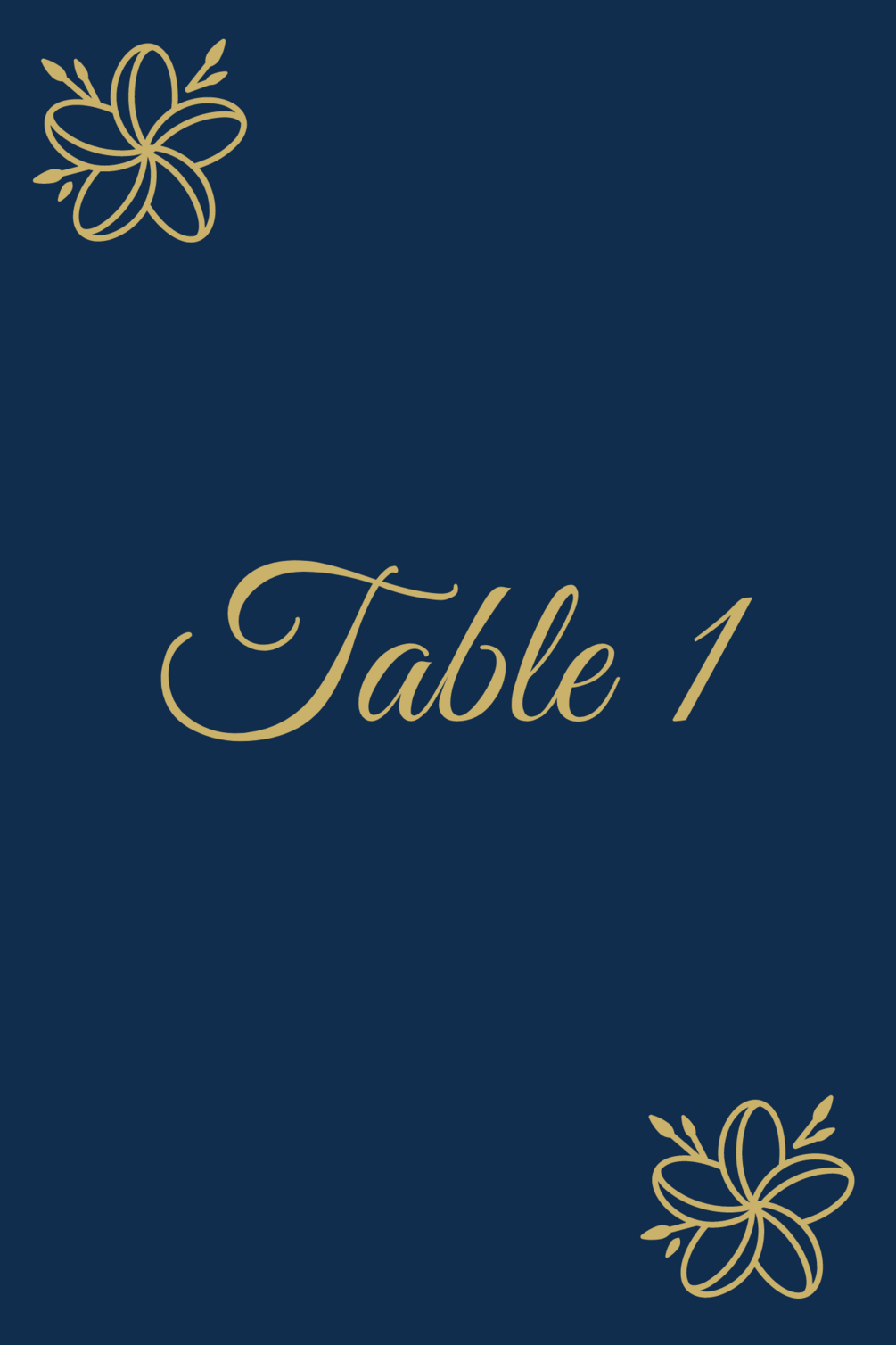 10 Printable Blue & Gold Table Numbers | A5 portrait PDF Format